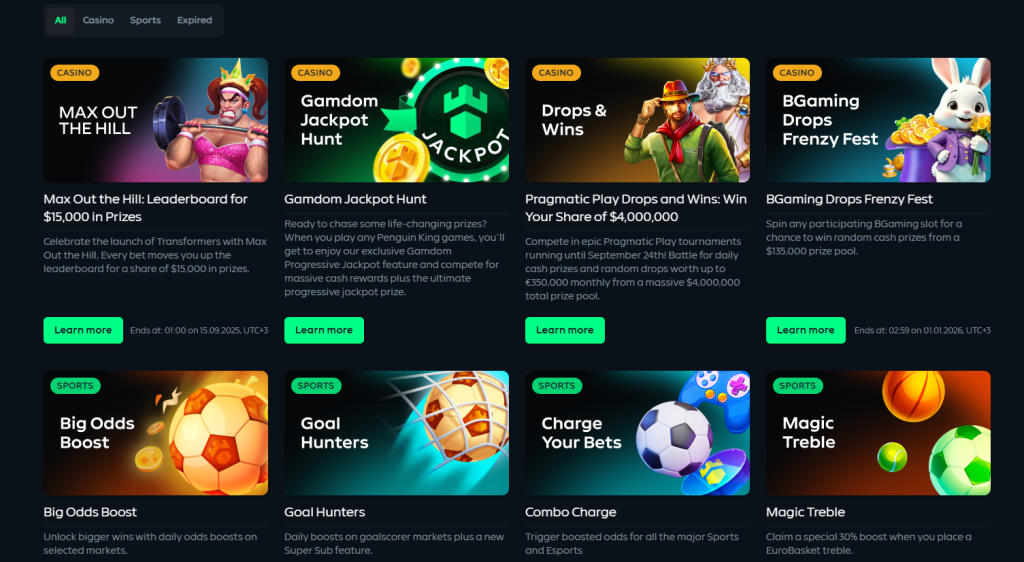 From Jackpot Hunt and Drops & Wins to Gamdom Free Spins Giveaways and more, our crypto casino has at least seven exciting promotions for players (allowing them to earn as much as $1 million).