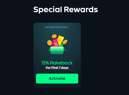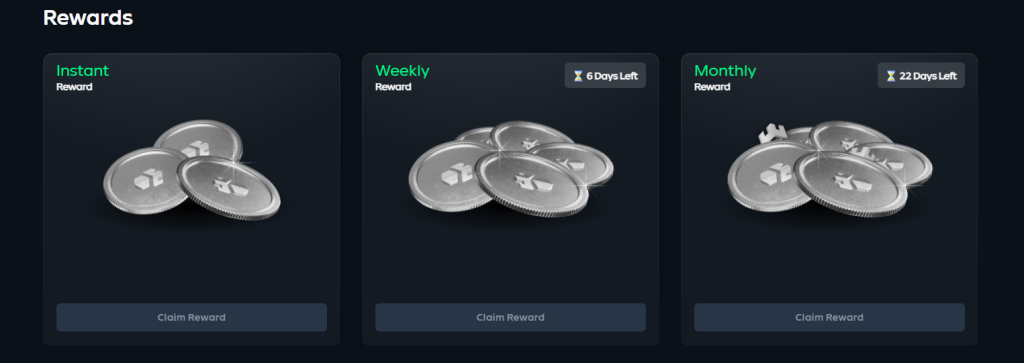 Gamdom Rewards are available instantly, although most users prefer the weekly and monthly versions for their more valuable prizes (which can include higher rakeback percentages, coin drops, and even free spins).