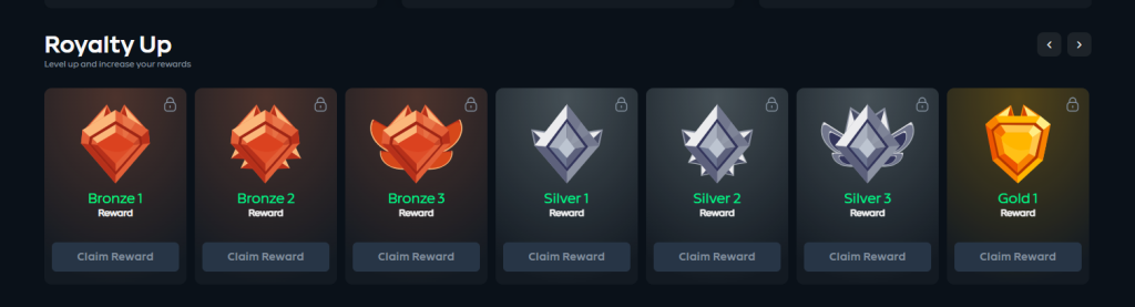 The Gamdom Royalty Rewards program recognizes players for their dedication to climbing the platform’s different player levels (from Bronze 1 to Opal 3).